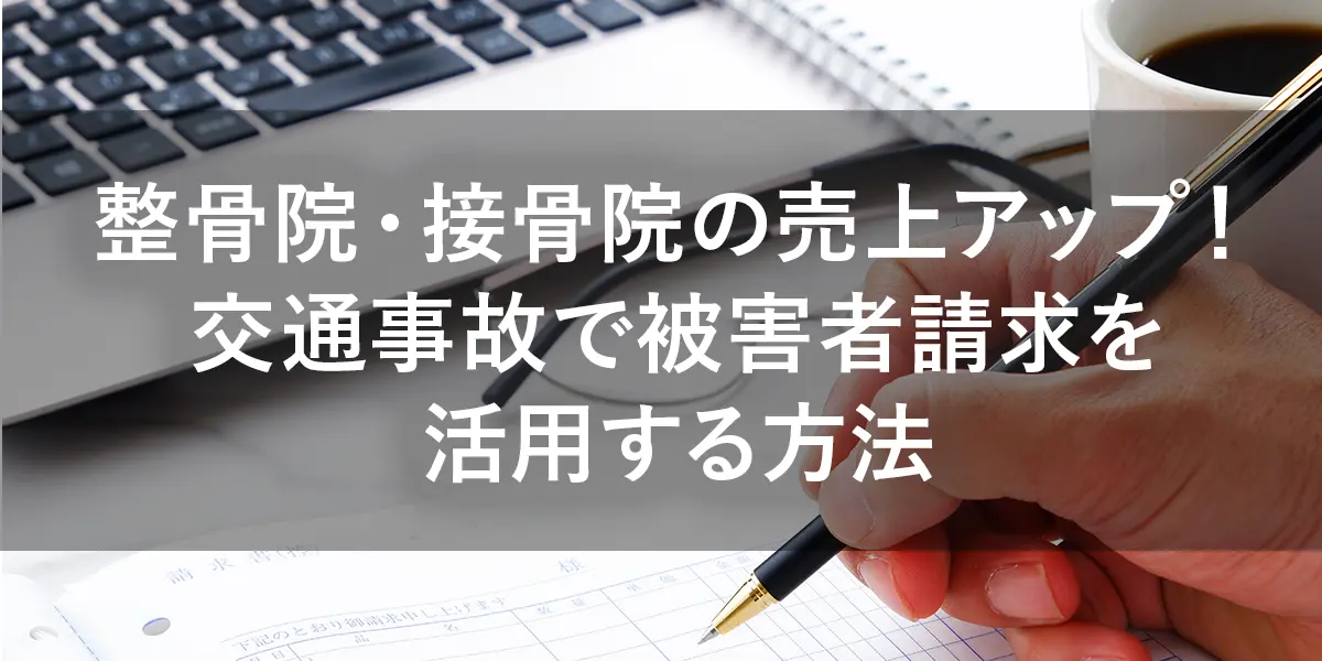 整骨院・接骨院の売上アップ!交通事故で被害者請求を活用する方法 公開日:2025年6月24日 コラム なぜ今、整骨院・接骨院に「被害者請求」の知識が必要なのか 交通事故患者の受け入れは、整骨院・接骨院にとって売上アップや新規集客に直結するため、非常に重要です。 しかし、実際には「被害者請求」などの制度を十分に理解し、活用 […] 続きを読む
